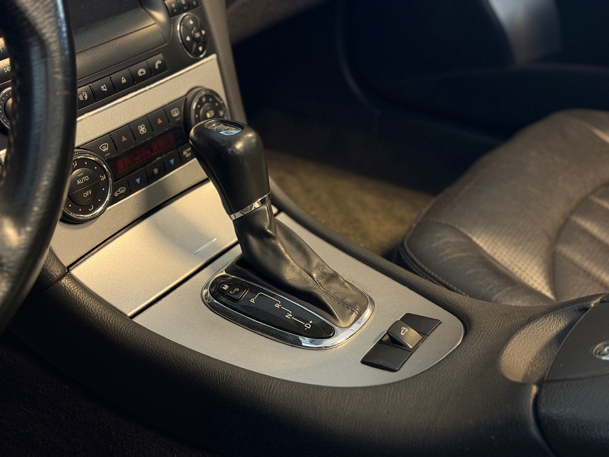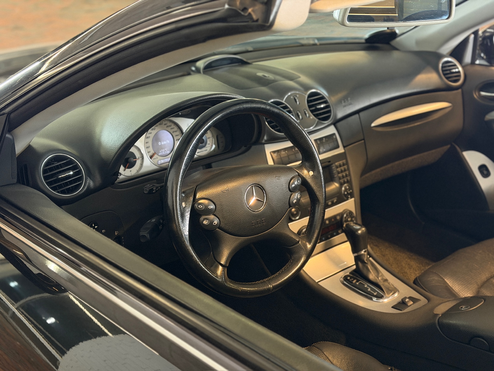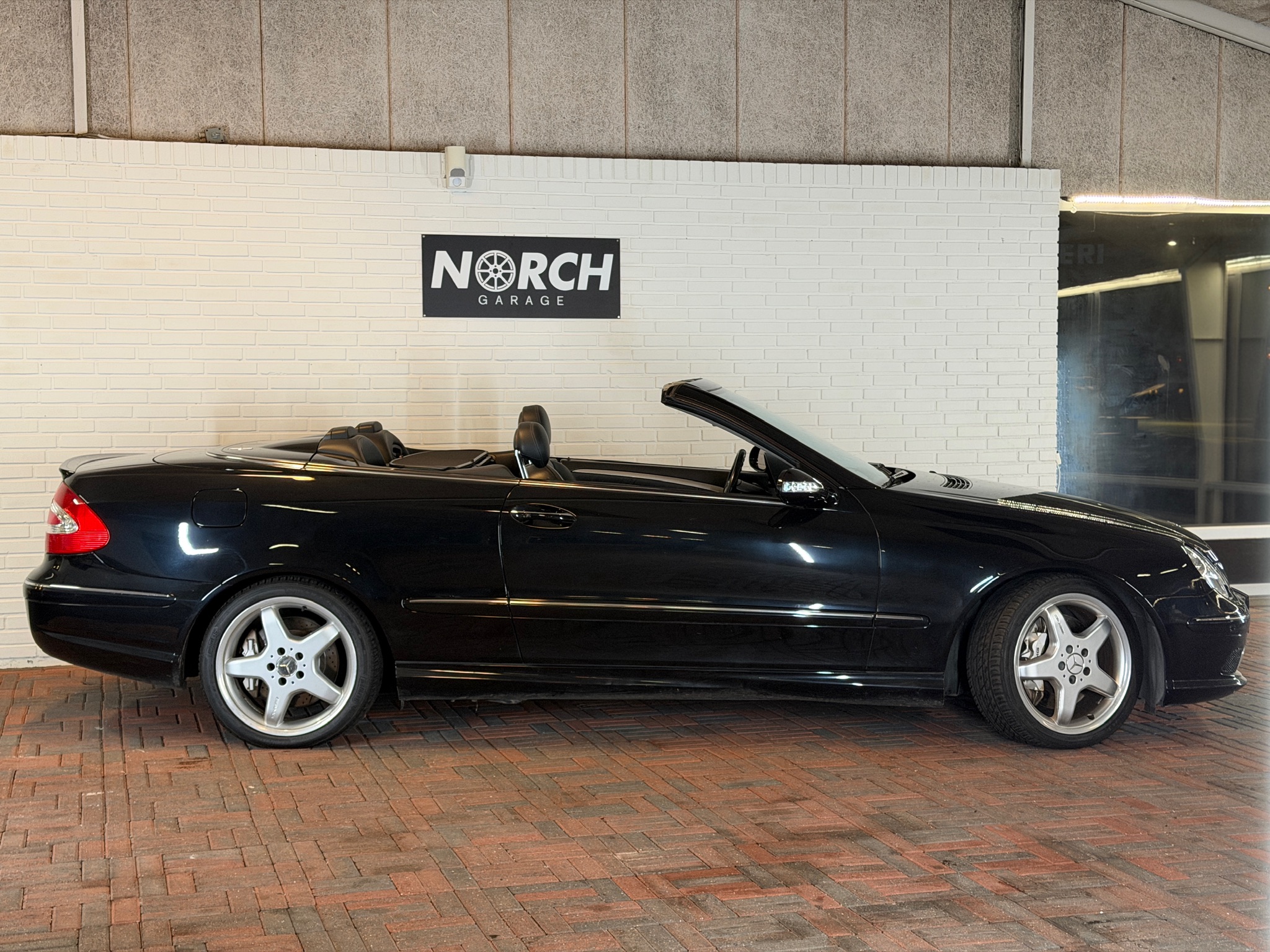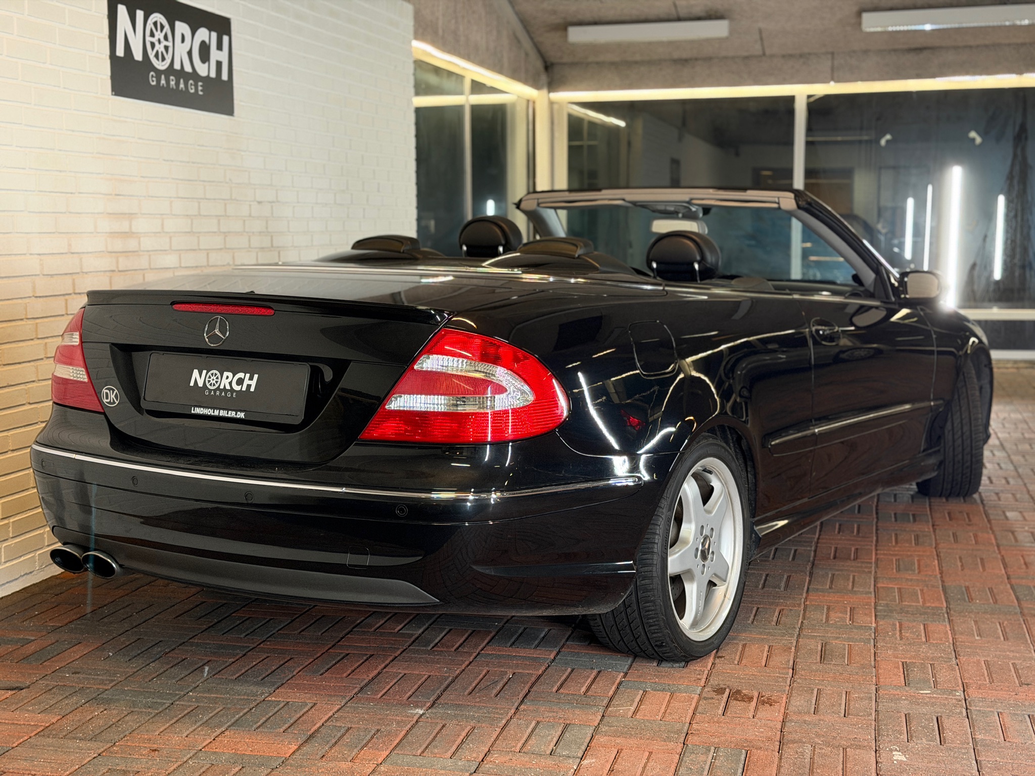 Her får du en Mercedes CLK 55 AMG Cabriolet med automatgear – en bil for dig, der vil have den klassiske AMG-følelse med massiv V8-lyd og komfort i top.